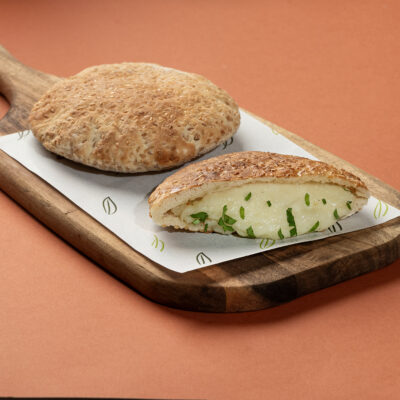 خبز كعك مقرمش محشو بجبن الحلومي الذائب، بطعم لا يُقاوم.